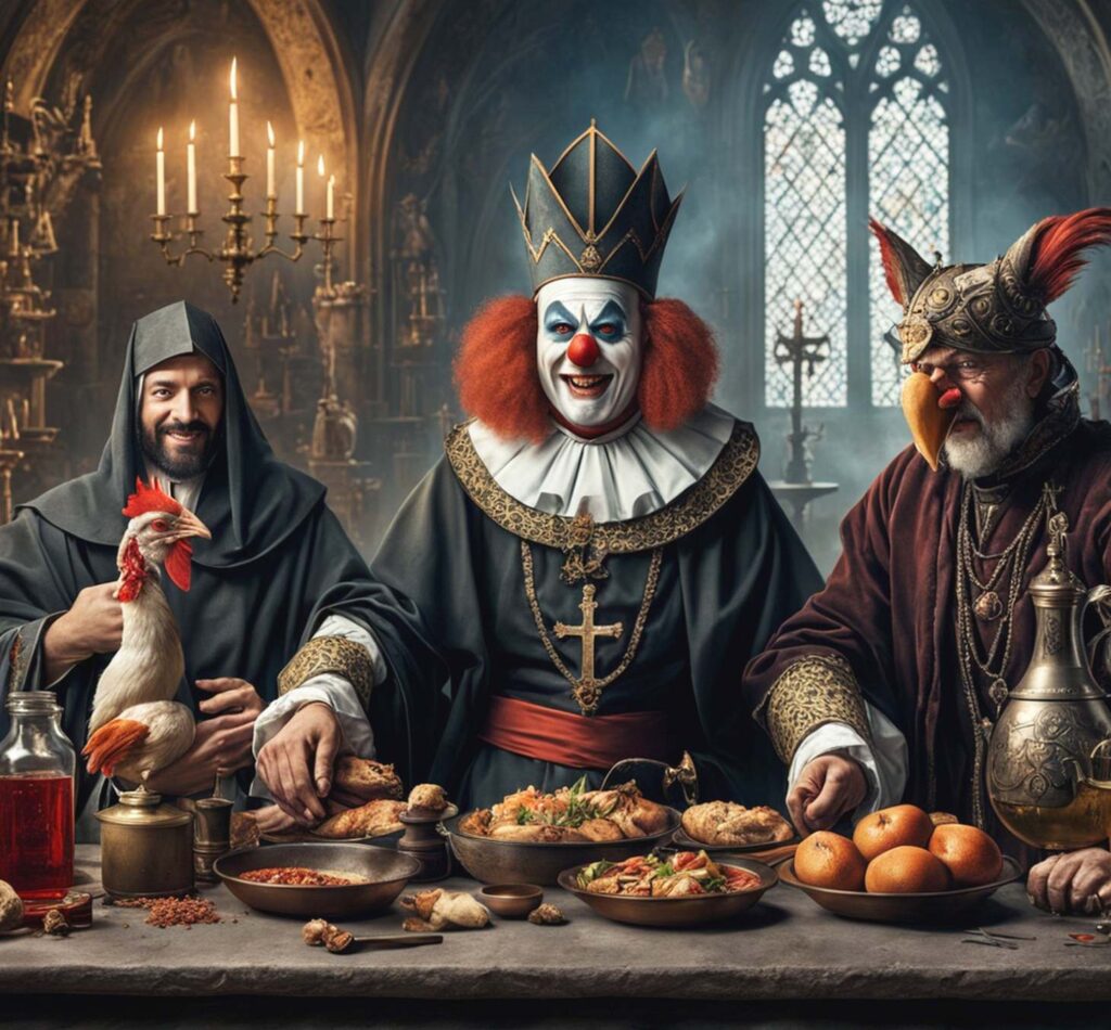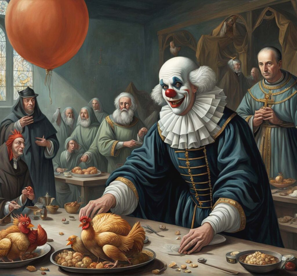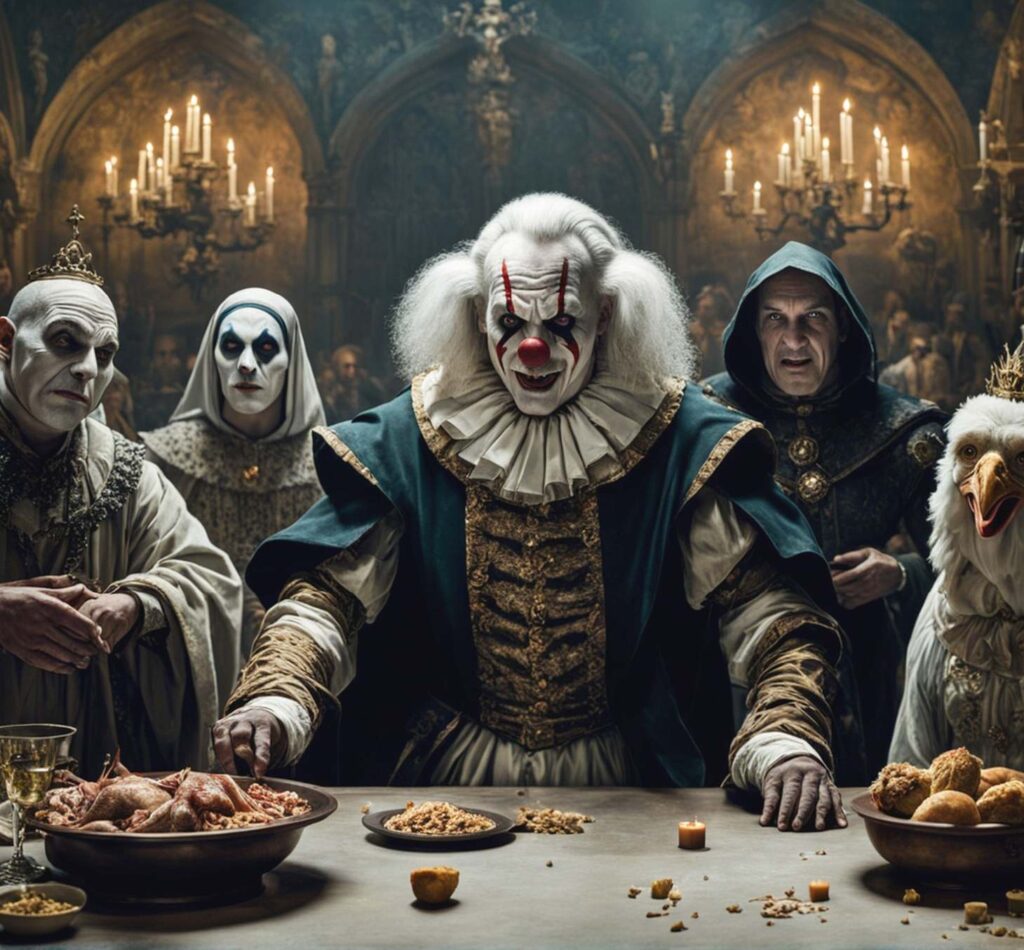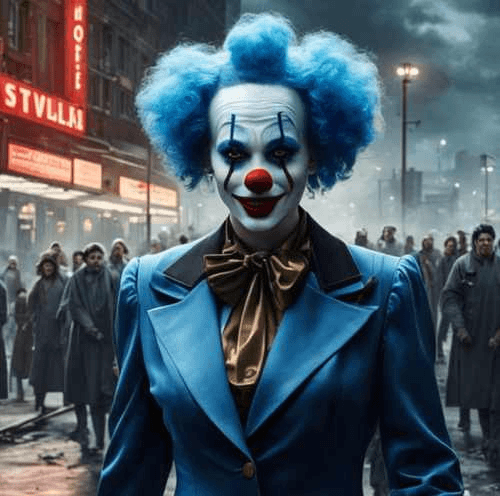 Ihre Gesichter waren mit leuchtenden Farben bemalt, ihre Augen funkelten vor Freude, doch ihr Lächeln war gleichzeitig bezaubernd und unheimlich. Es war ein Lächeln, das die Herzen der Menschen berührte, aber auch ein Gefühl der Kälte in ihnen hinterließ.Die Dorfbewohner waren fasziniert und verzaubert von den Clowns, doch je mehr sie zusahen, desto mehr spürten sie eine seltsame Dunkelheit in ihren Gedanken. Die älteste Frau des Dorfes, weise und erfahren, bemerkte dies sofort. Sie erzählte den anderen von einer alten Legende: „Die Clowns sind nicht nur Komiker. Ihr Lächeln kann Wünsche erfüllen, doch es fordert einen hohen Preis.“ Neugierig und verführt von der Möglichkeit, ihre tiefsten Wünsche zu erfüllen, begannen einige Dorfbewohner, den Clowns ihre Geheimnisse anzuvertrauen. Ein junger Mann wünschte sich Ruhm und Reichtum; eine einsame Frau sehnte sich nach Liebe und Gesellschaft. Doch jedes Mal, wenn jemand einen Wunsch äußerte, schien ein Stück ihrer Freude zu verschwinden.