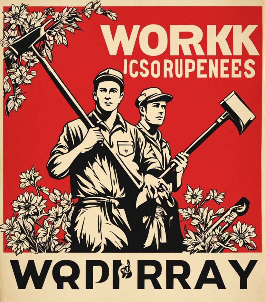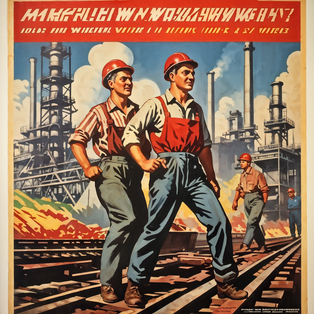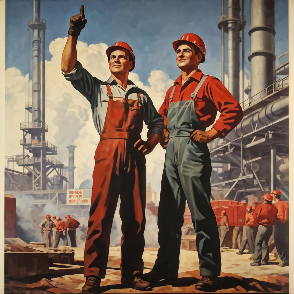- Heroische Arbeiter mit muskulösen Armen und entschlossenen Gesichtern