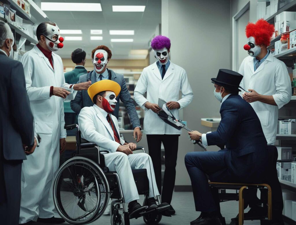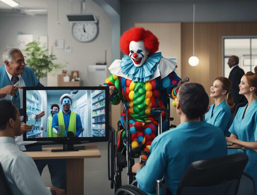 Als die Stimmung auf dem Höhepunkt war, rief Schwester Wirbelwind einen großen Clown-Wettbewerb aus. Jeder durfte sich verkleiden und seine besten Witze erzählen. Die Flure füllten sich mit bunten Perücken, roten Nasen und riesigen Schuhen.