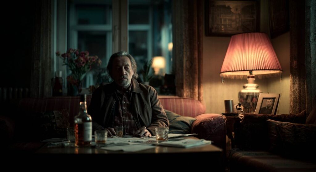 Er begann zu trinken, nicht in Exzessen, sondern wie ein Uhrwerk. Präzise Dosen, die seine Erinnerung dämpften und die Gegenwart zu einer zähen, wolkigen Suppe machten. Doch ich sage dir: er trank nicht, um zu vergessen – sondern um auszuhalten. Jeder Abend war ein zweites Begräbnis. Jeder Morgen ein unerwünschtes Erwachen.